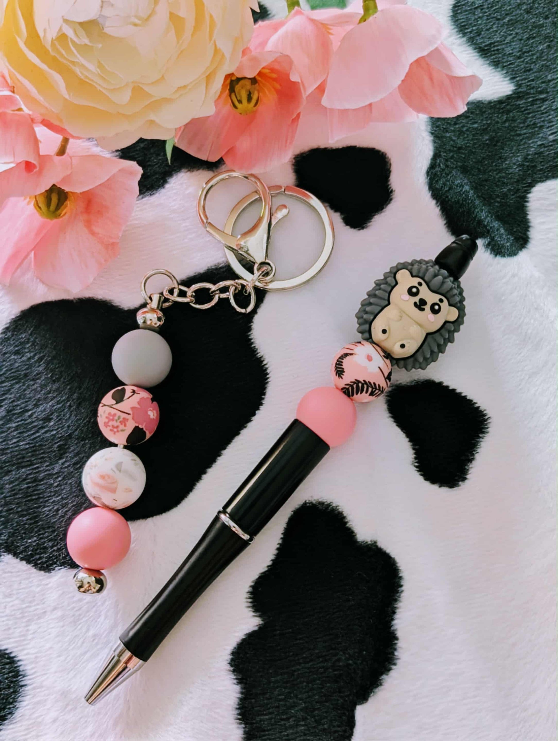 Ensemble stylo bille et porte-clés assorti modèle HÉRISSON.